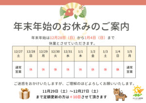 年末はご予約が混み合いやすくなります。